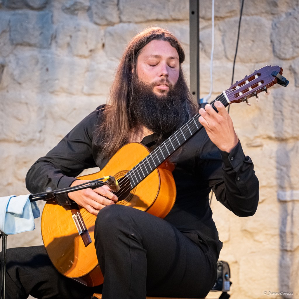 Voyageant avec humour entre les subtiles mélodies de la guitare classique, les échanges extrêmes et puissants entre la danse et la guitare, les gestuelles et envolées émouvantes de l’interprétation et de la voix du corps…